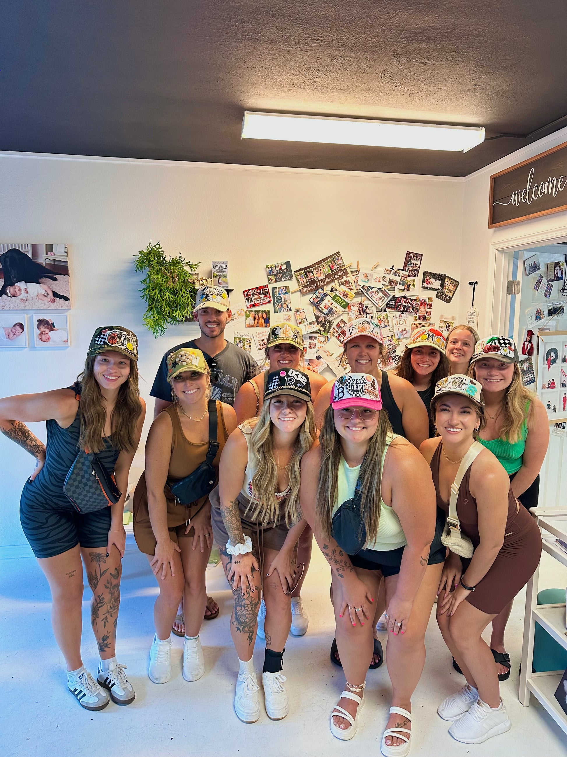 Bring the Howdy Honey hat magic straight to your celebration! Our Trucker Hat Bar is a fully mobile, interactive experience where guests design their own custom trucker hat from start to finish. We bring everything — the hats, the patches, the setup, and the creative fun — so all you need to do is gather your crew and enjoy.